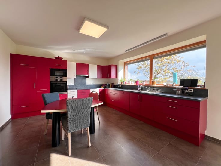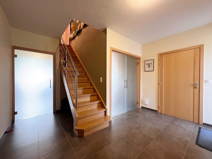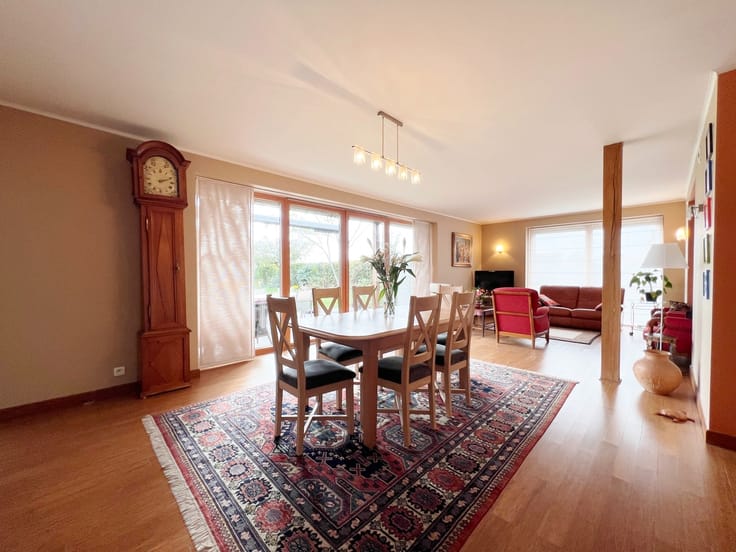 Splendide villa nichée au sein de la campagne de Saint-Léger. Cette superbe bâtisse, développant près de 300M² habitables, et érigée sur un terrain de plus de 1.200M², se compose comme suit. REZ-DE-CHAUSSÉE : Un hall d'entrée desservant un WC séparé ainsi qu'offrant un escalier apparent, un grand et lumineux séjour profitant d'une vue dégagée sur le jardin ainsi que la campagne environnante, une spacieuse cuisine équipée donnant également vue sur les extérieures de la propriété, une buanderie, une salle de bains, deux chambres à coucher dont une pouvant être idéal afin d'y exercer une activité professionnelle, un vaste garage pour deux véhicules. ÉTAGE : Un hall de nuit desservant un WC séparé, une salle de douche, une chambre à coucher, ainsi qu'un vaste espace de plus de 60M² offrant encore de nombreuses possibilités d'aménagements. GRENIER : Un grand espace accessible via un escalier escamotable, servant à titre de rangement. EXTÉRIEUR : Un grand parking privatif permettant le stationnement de nombreux véhicules, une terrasse s'ouvrant sur un spacieuxjardin parfaitement arboré, profitant d'une excellente orientation. CARACTÉRISTIQUES : - Secteur recherché. - Habitation datant de 2010. - Habitation de type "passive" en énergie. - PEB A+. - Installation de 24 panneaux solaires. - Installation de 2 panneaux thermiques. - Système de VMC double-flux. - Triple vitrage. COUP DE CŒUR. Obligation de rénovation: inconnu