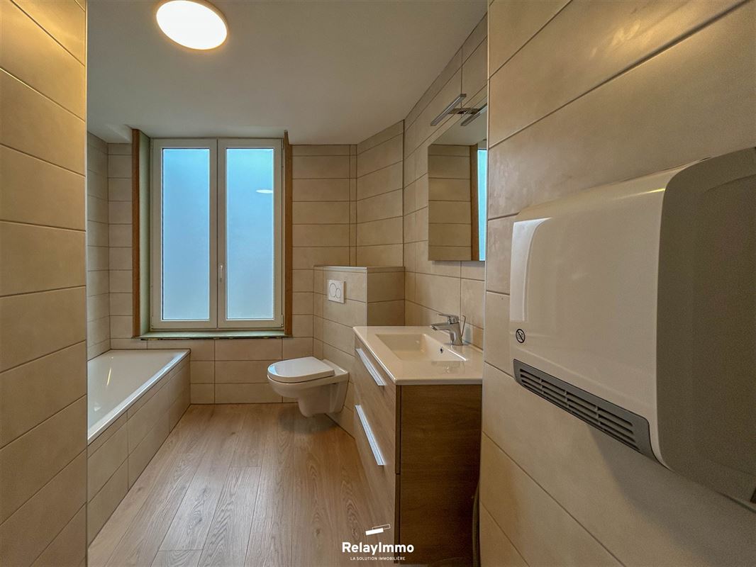 Appartement d'une surface de 59m2 comprenant une chambre. Composition: spacieux living comprenant salon et salle à manger, cuisine semi-équipée avec four, plaque de cuisson (induction), hotte et nombreux rangements, salle de bain moderne avec baignoire, lavabo et wc, une chambre. [..] Lire plus